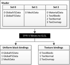 But this is a decision that you will have to make for you graphics engine. We wanted to support descriptor sets at a high level, but this can also be hidden at a lower level in your engine so that you don’t have to think about handling descriptor set remapping in your OpenGL implementation.
