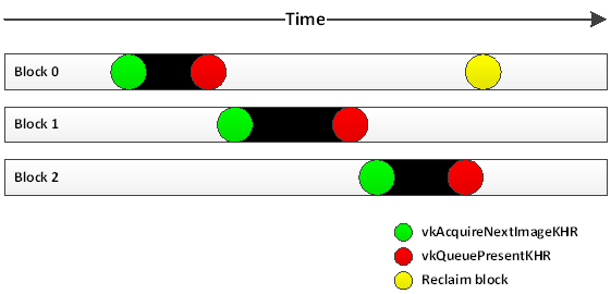 It’s also up to the developer to ensure that memory that is used by the pipeline is valid throughout execution – this means that you cannot free memory that is bound to the pipeline. Luckily Vulkan also provides a means to check when a given command buffer has been completed and decide whether to free or recycle memory.